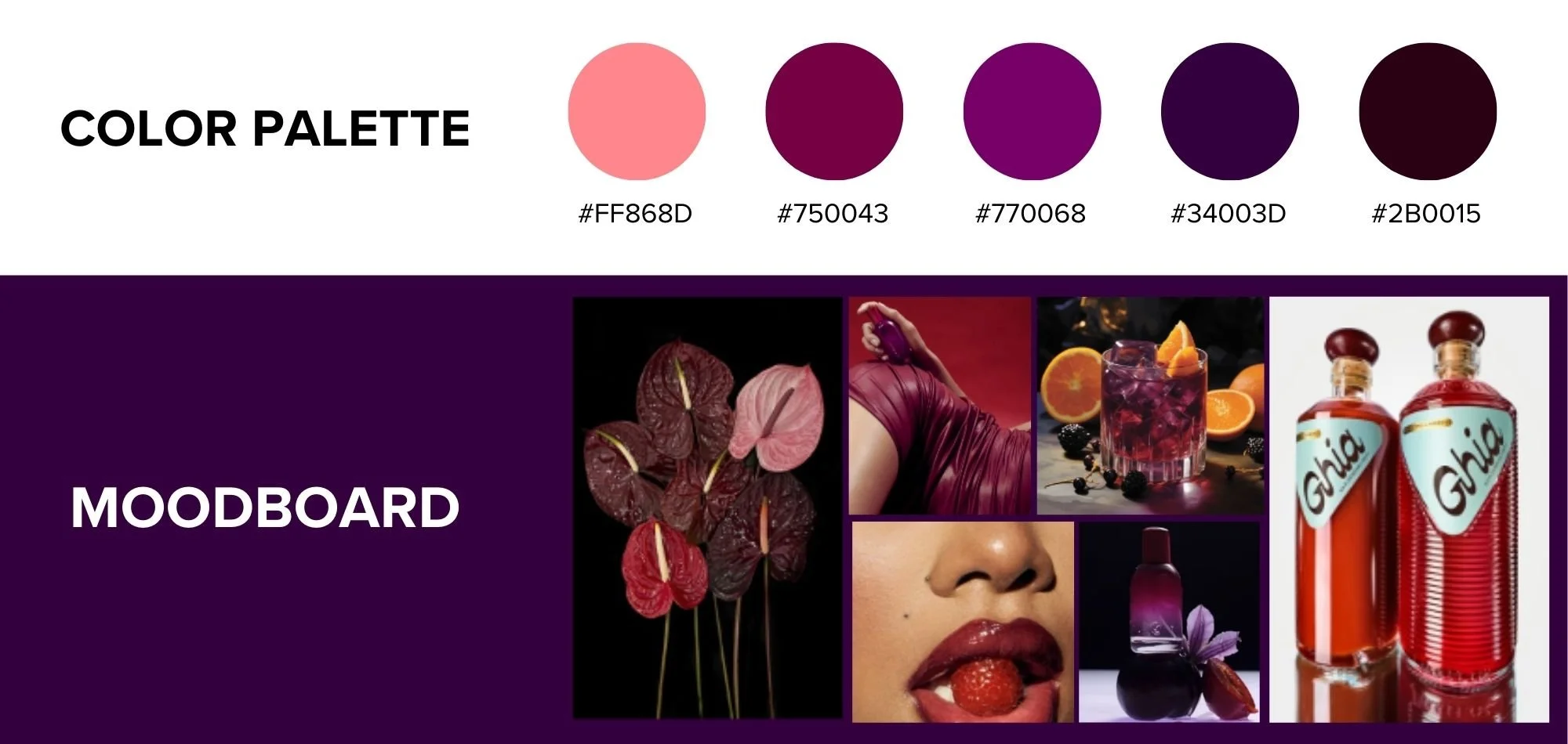The research began with a taste-test event at our local bar, where participants were asked to try variations of the product, interact with related visual stimuli, and participate in a focus group. My creative team and I designed deliverables for this event to aid our strategists' research—including posters of mood boards, campaign concepts, logo testing, packaging designs, as well as flavor-pairing menus and taste cards (see video on slide 40).