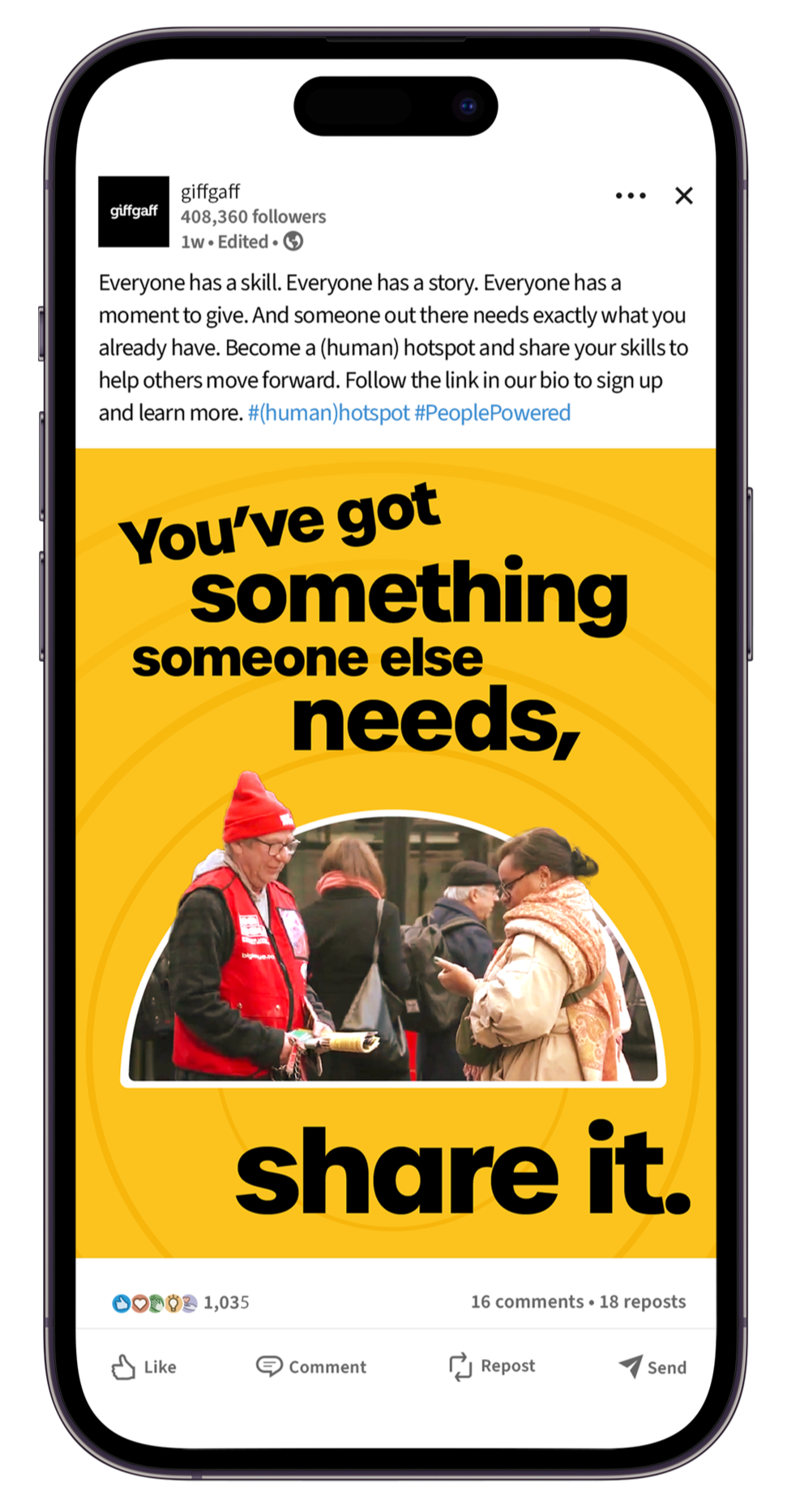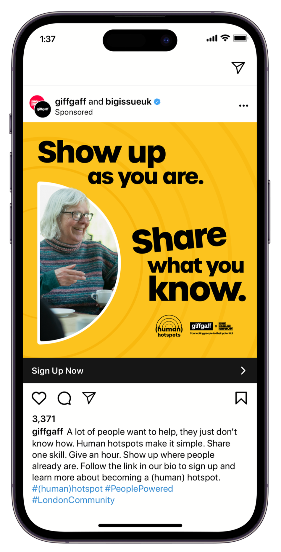 giffgaff and Big Issue flip the meaning of a “hotspot” by forming a human support network—connection and access powered by people, wherever they stand.