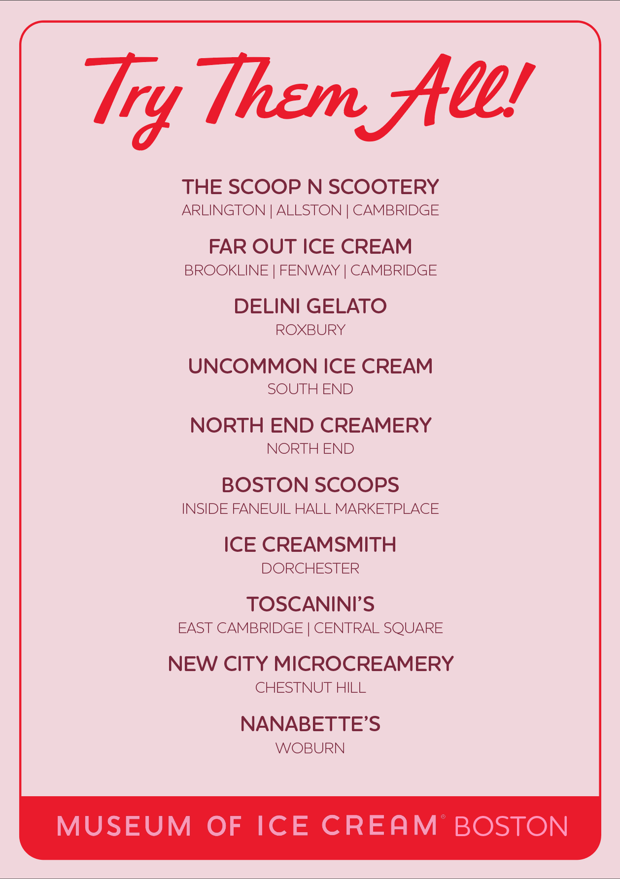 During National Ice Cream Month, we’ll send an ice cream truck around the city packed with samples. Punch cards allow visitors to earn free museum admission by visiting and “researching” local ice cream shops.