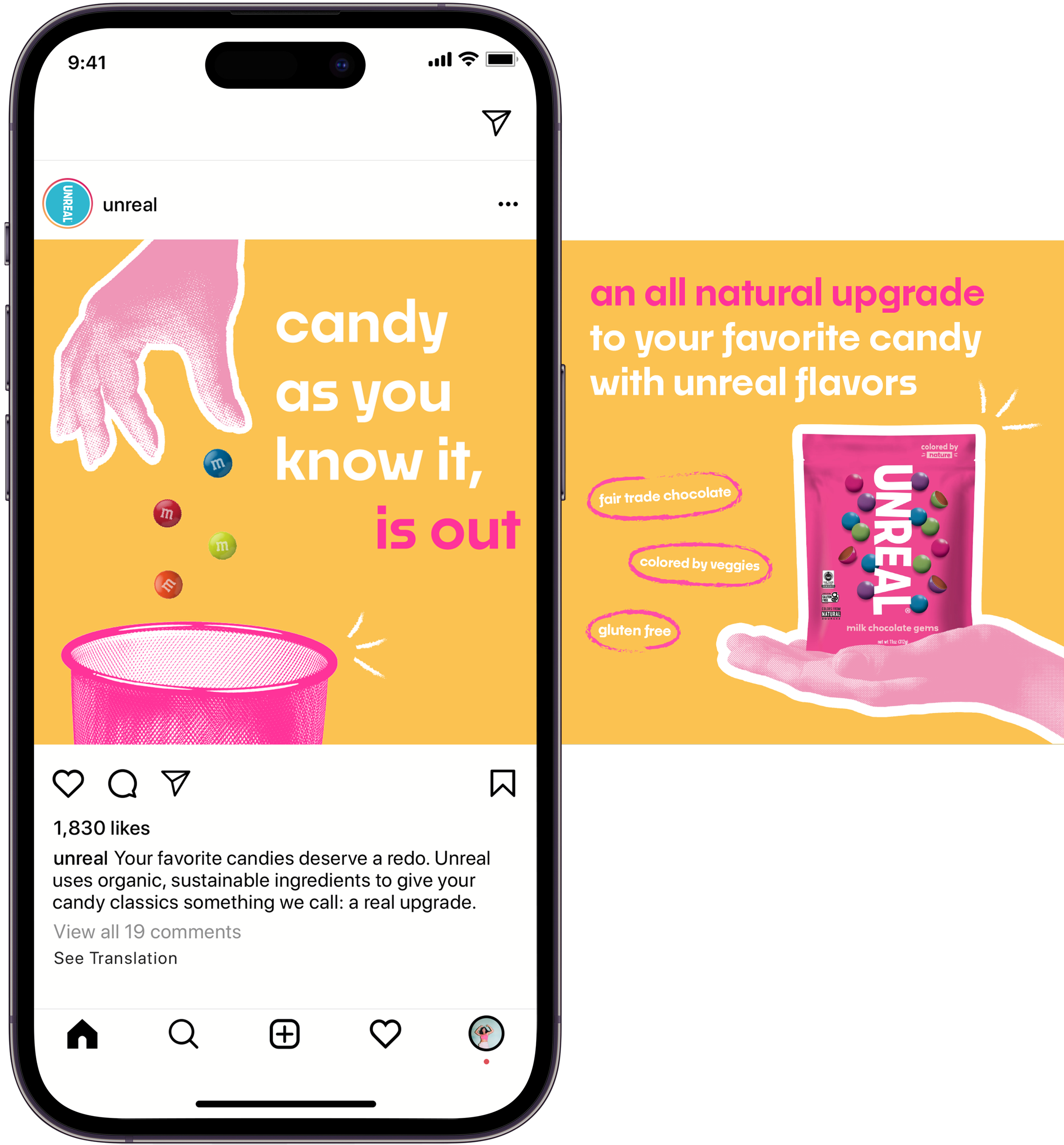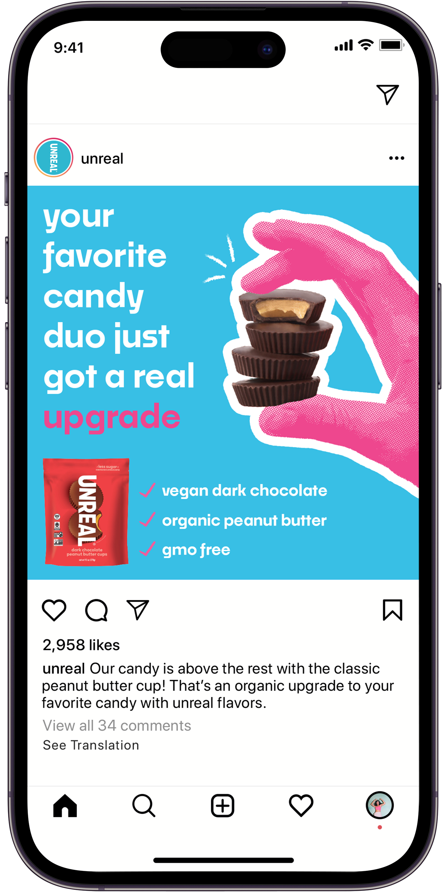 Get adults who love candy—but feel guilty about eating it—to see Unreal as the brand that lets them indulge without compromise.